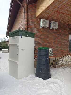 Септик Топас 150 Пр дополнительно комплектуется дренажным насосом, который, при поднятии воды до определенного уровня, принудительно выбрасывает ее из станции. Выходная труба в этом случае устанавливается так, чтобы остатки воды после сброса стекали обратно в резервуар. Очищенные стоки можно сбрасывать в канаву (дренажную, ливневую, придорожную), приемный колодец или в овраг.